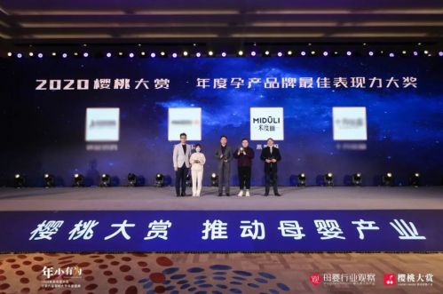 本次櫻桃大賞頒獎盛典由母嬰行業觀察主辦,以“年少有為”為主題。旨在表彰母嬰商業領域的創業創新、致敬行業標桿、發掘新生力量,推動母嬰產業發展。2020櫻桃大賞年度盛典權威頒發【企業獎】、【產品獎】等年度大獎,米度麗品牌憑借2020年的強勢表現以及產品的創新升級在【企業獎】層面獲得年度孕產品牌最佳表現力大獎,在【產品獎】層面獲得年度顏值產品大獎!以強勢的表現領跑孕裝領域,用絕對的實力書寫“年少有為”!
