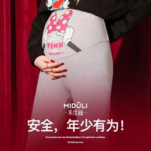 2020年米度麗與迪士尼進行IP聯名,米奇米妮的形象在全世界范圍內第一次出現在孕裝之上。大面積的迪士尼印花圖案,俏皮的米奇米妮唐老鴨黛絲形象讓孕裝擁有更多時尚的可能。正如我們獲得年度顏值產品大獎的迪士尼系列孕婦褲。米奇的雙手托著米妮的蝴蝶結,這一富有創意性的設計在托腹位置恰好寓意孩子是上天賜予父母最珍貴的禮物。顏值不僅是時尚的外化,更是內在思潮文化的覺醒和傳播。米度麗致力探索與迪士尼之間的故事強關聯,以時尚之名,年少有為!