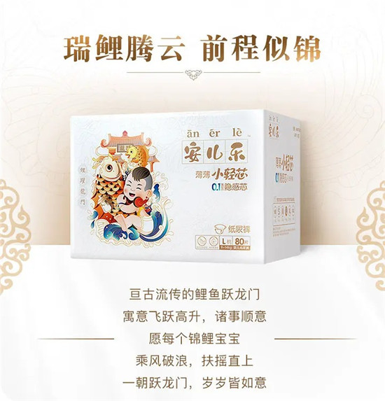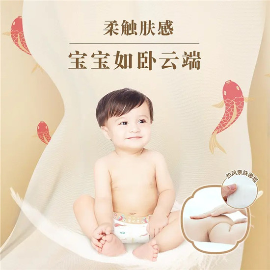 總之,這是一款十分適合年輕媽媽的紙尿褲,愿每個穿戴它的錦鯉寶寶都可以乘風破浪,扶搖直上,歲歲皆如意。